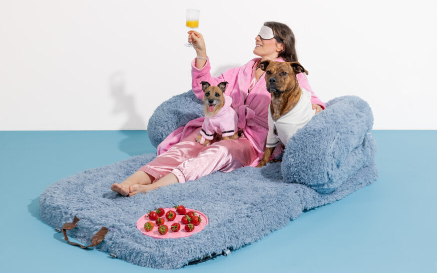 The Lesure 3-in-1 Foldable Human Dog Bed is an oversized, ultra-plush lounging bed designed for both humans and their pets to relax together. It easily transforms from a flat bed to a supportive lounger or sofa-style setup, making it ideal for reading, watching TV, gaming or cuddling with your dog. It’s made with OEKO-TEX certified fabrics and CertiPUR-US foam for quality and safety.